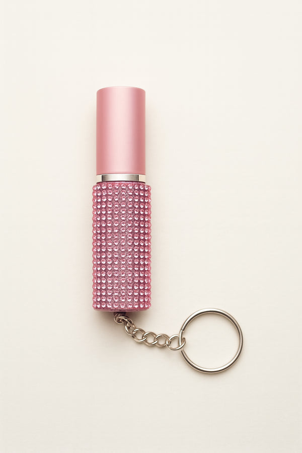 Portachiavi con strass e porta profumo integrato da 10ml.